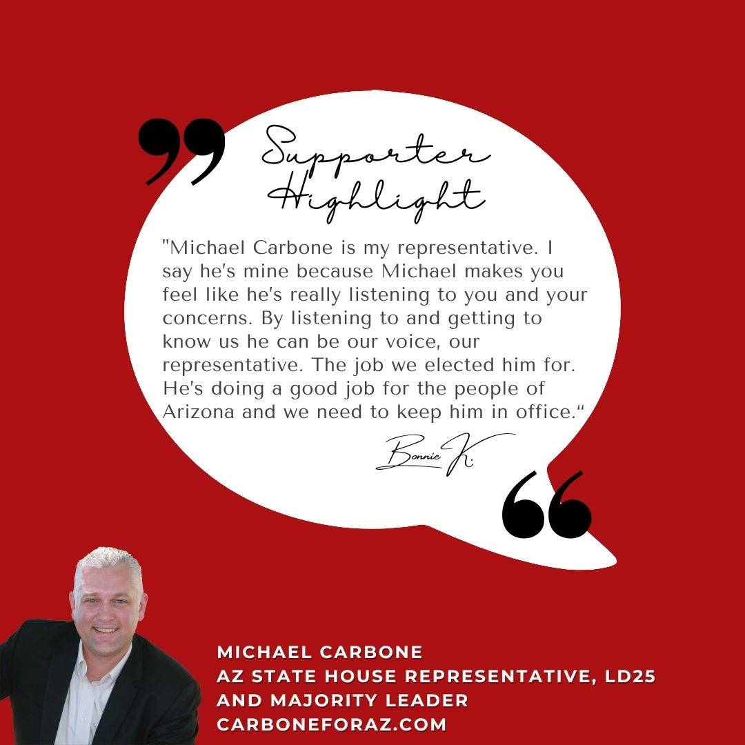 In this section, I will feature stories or testimonials from supporters. Would you like to be featured in a future email and social media? Email me your story to carbone@carboneforaz.com.